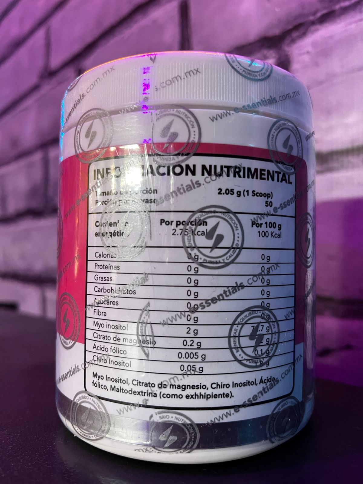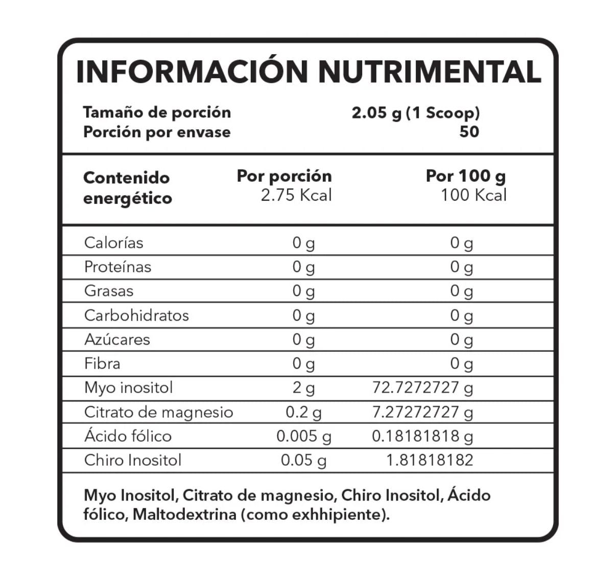 Suplemento en polvo a base de inositol, chiro inositol, vitaminas y minerales.